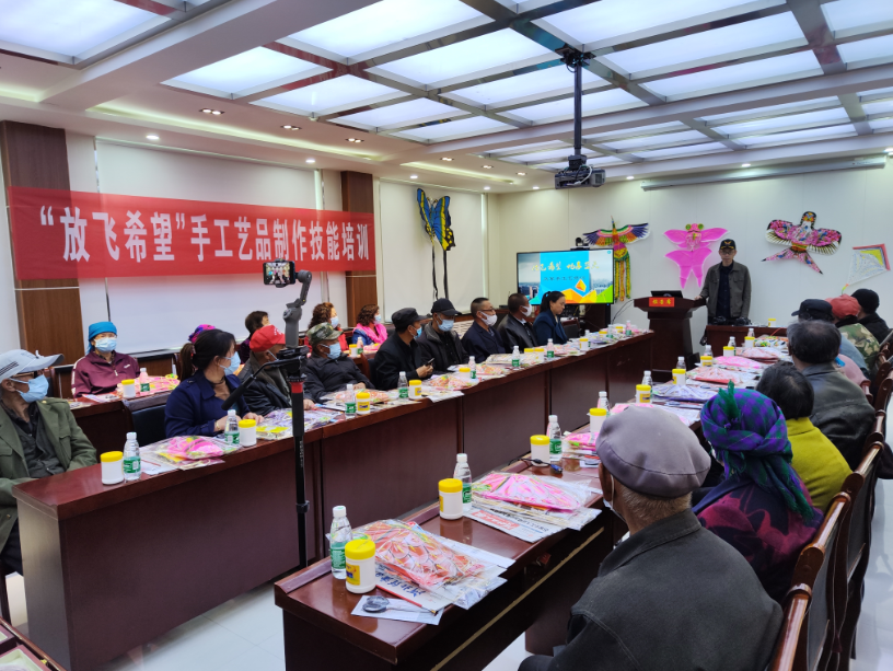 在5月15全國助殘日這一天,在饅頭營鄉(xiāng)會(huì)議室,希望小鎮(zhèn)項(xiàng)目組聯(lián)合張北縣殘聯(lián)、張北縣殘疾人溫馨家園組織了30多名當(dāng)?shù)亓羰乩先恕埣踩舜迕耖_展了“放飛希望  手工藝品制作技能培訓(xùn)”,本次培訓(xùn)一共分為4期,首次培訓(xùn)主要內(nèi)容為“風(fēng)箏制作”,重點(diǎn)針對傳統(tǒng)風(fēng)箏及娛樂風(fēng)箏制作工藝進(jìn)行培訓(xùn),培訓(xùn)現(xiàn)場邀請了中國航空學(xué)會(huì)專家、張北縣政協(xié)委員新聯(lián)會(huì)會(huì)員,剪紙、風(fēng)箏制作專家樹兒灣小學(xué)“蘭學(xué)淵老師”進(jìn)行了專業(yè)講解及培訓(xùn),確保每一位學(xué)員掌握風(fēng)箏的制作工藝。